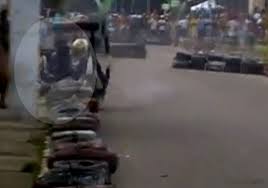 A prova foi parada instantaneamente enquanto várias pessoas se aglomeraram em volta do kart.